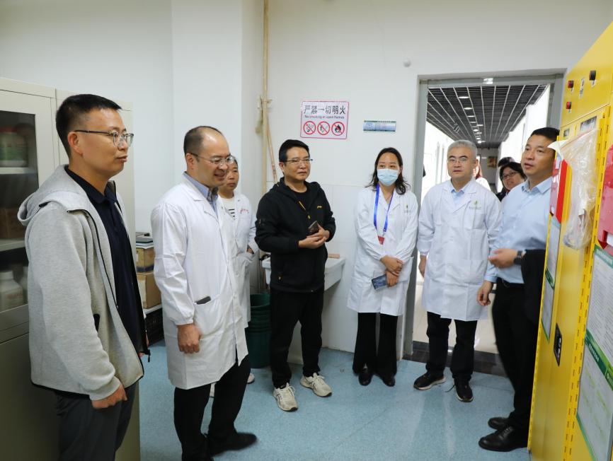 座谈会后,调研组深入学校Ⅰ、Ⅱ级风险实验室,实地考察了安全设施配备、危险化学品全流程管理、应急处置预案建立等情况。