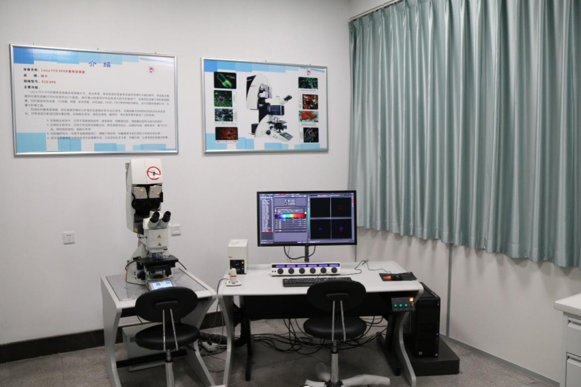 大型仪器共享平台配有生物激光和高速转盘式激光两台共聚焦显微镜。生物激光共聚焦显微镜为德国Leica公司生产,可以实现多色成像,3D成像,拼图,多点采集,动态追踪,FRAP,FRET等多种模块,此外还有图像处理,定量分析等工具。
